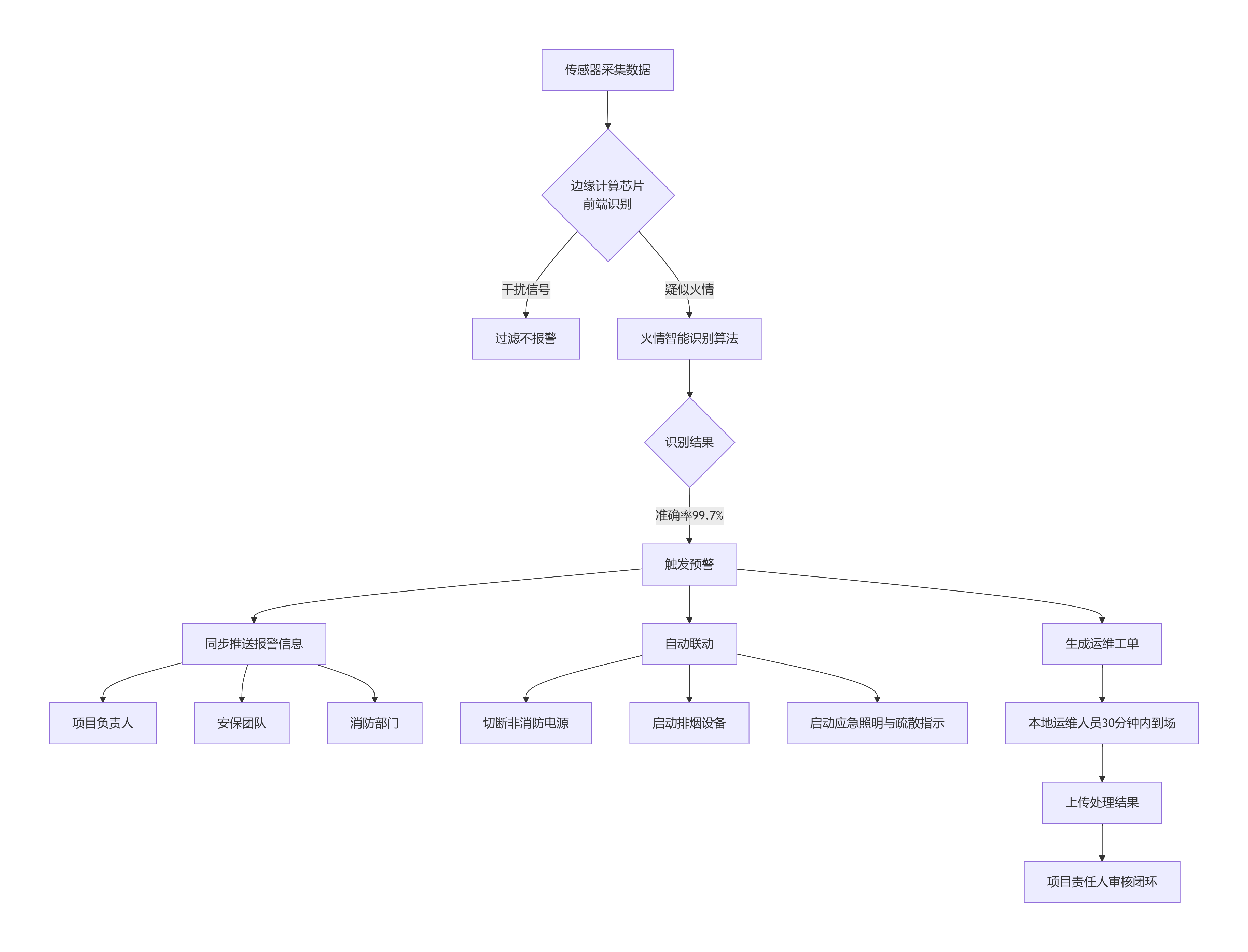 系統(tǒng)識別到火災(zāi)隱患,會同步做幾件事:把位置、火情等級發(fā)給負(fù)責(zé)人。自動切斷報警區(qū)域的非消防電源,防止二次起火;啟動排煙、應(yīng)急照明和疏散指示。全程不用人動手,處置效率提高了85%以上。