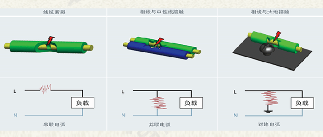前兩種電弧故障都不會在回路中產(chǎn)生剩余電流,可以通過故障電流電弧探測器進行探測。