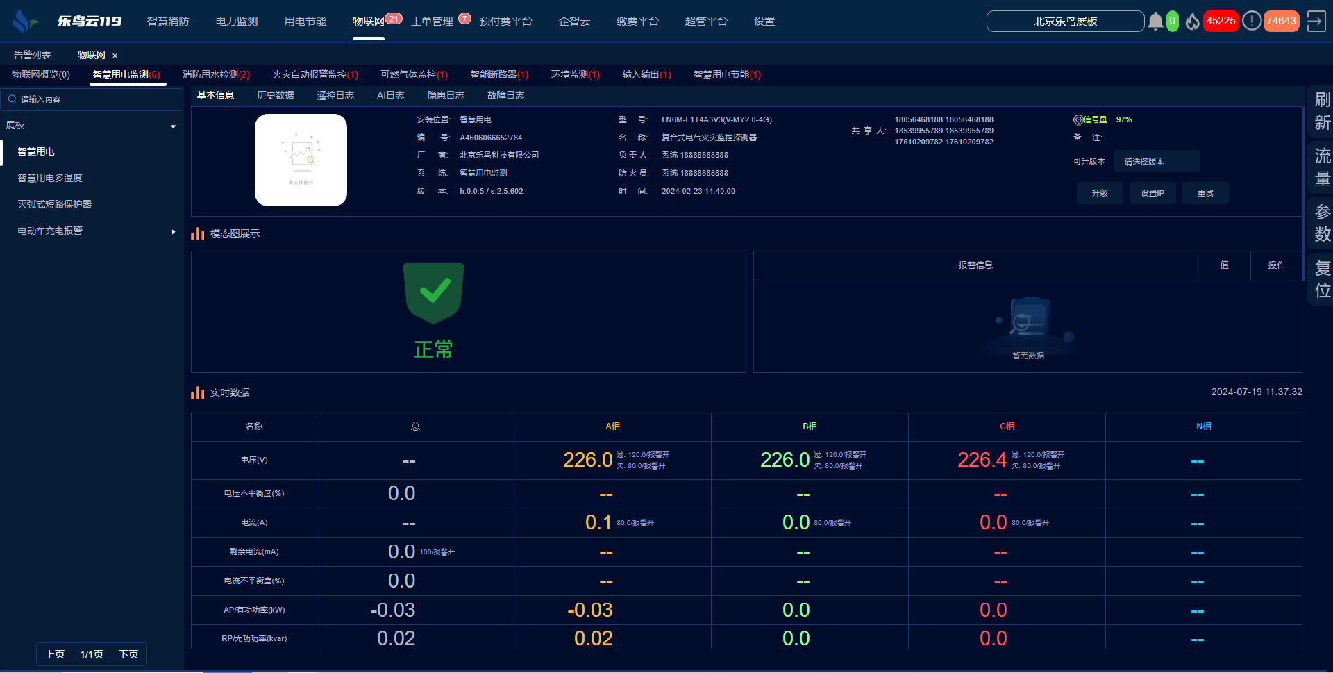 ·樂鳥云V4.0版本現(xiàn)在集成了智慧消防、電力運(yùn)維和用電節(jié)能等多個(gè)系統(tǒng),為用戶提供了一個(gè)統(tǒng)一的綜合性管理平臺(tái)。
