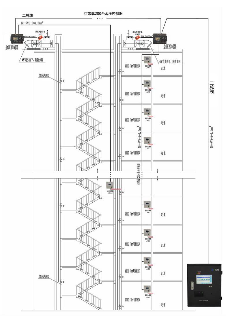 余壓監(jiān)控系統(tǒng)是由余壓監(jiān)控主機、余壓控制器、余壓傳感器、泄壓閥執(zhí)行器組成。當火災發(fā)生時,位于樓道的余壓傳感器探測到壓差出現(xiàn)異常時,發(fā)出報警信號的同時,控制器將開啟或關閉泄壓閥執(zhí)行器,監(jiān)控主機則記錄狀態(tài)...