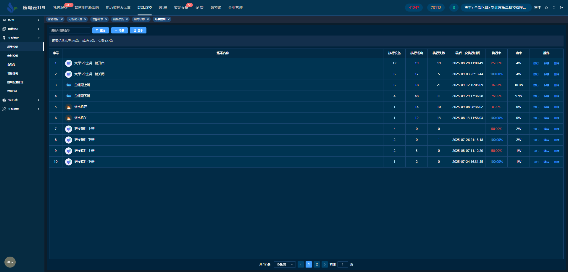 按照不同的需求場景,選定設備構建執(zhí)行單元組,按照預設配置進行控制,實現(xiàn)節(jié)點級精準控制。操作欄中點擊執(zhí)行,即可執(zhí)行已配置的場景。點擊編輯按鈕進入場景配置界面。點擊已刪除,確認后可刪除已配置好的場景。