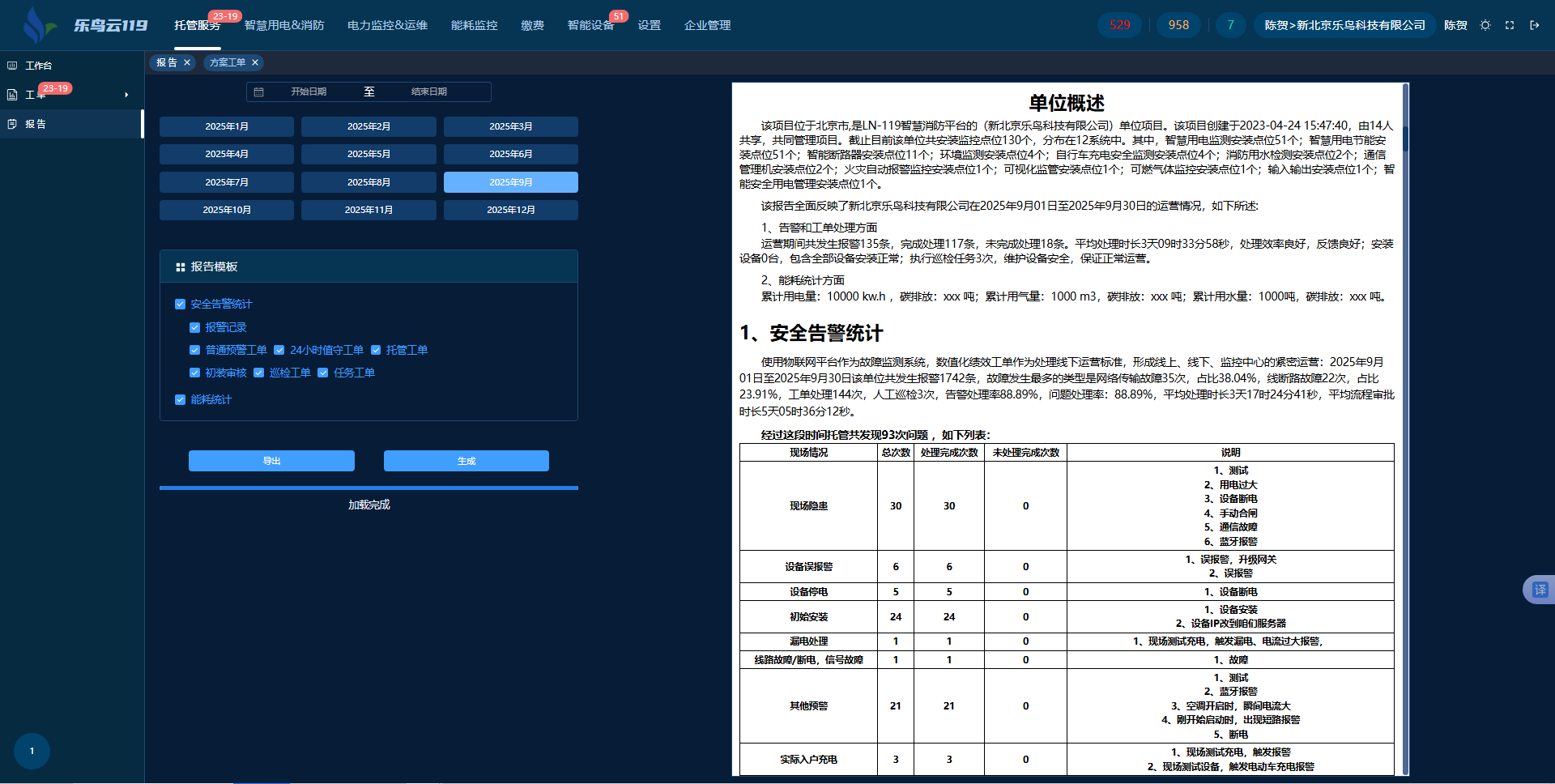 運維報告系統(tǒng),統(tǒng)計并呈現(xiàn)項目單位的安全告警情況、電力運行狀態(tài)以及能耗數(shù)據(jù)??砂丛伦远x報告模板,實現(xiàn)安全與能耗狀況的直觀數(shù)字化展示和精細化管理。