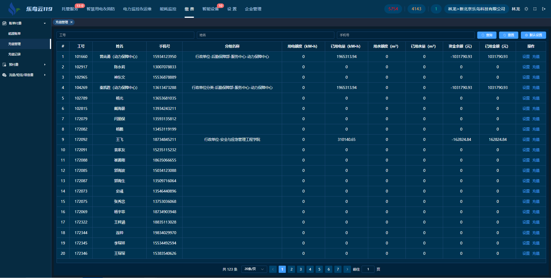 系統(tǒng)實時顯示資金賬戶信息,用戶能單獨設置電價格。充值方式多樣,能源額度可充一年總額度且能增減,資金余額充值有資金劃撥和線下收取兩種方式。
