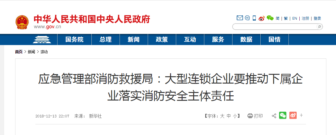 應(yīng)急管理部:大型連鎖企業(yè)要推動下屬企業(yè)落實消防安全主體責(zé)任