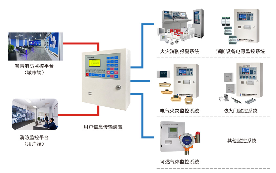 向監(jiān)控中心傳送火災報警信息、設施狀態(tài)、安全管理信息,接收監(jiān)控中心提供的相關信息服務。